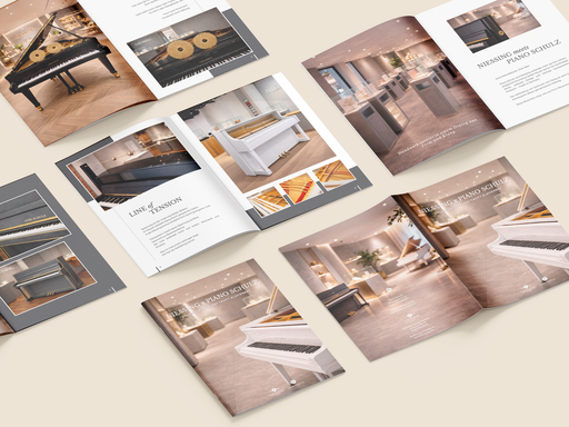 Projekt: Entwicklung von Gestaltungsrichtlinien, Vereinheitlichung der Bildsprache sowie Design von Print- und Digitalmedien für den Kunden Piano-Schulz (Gebr. Schulz)